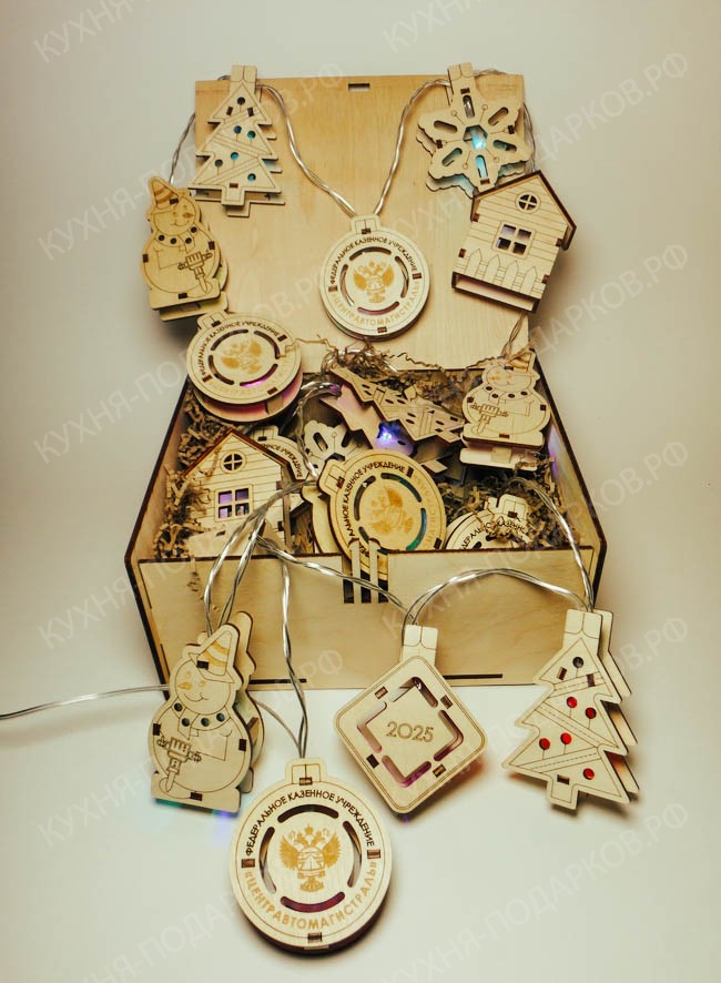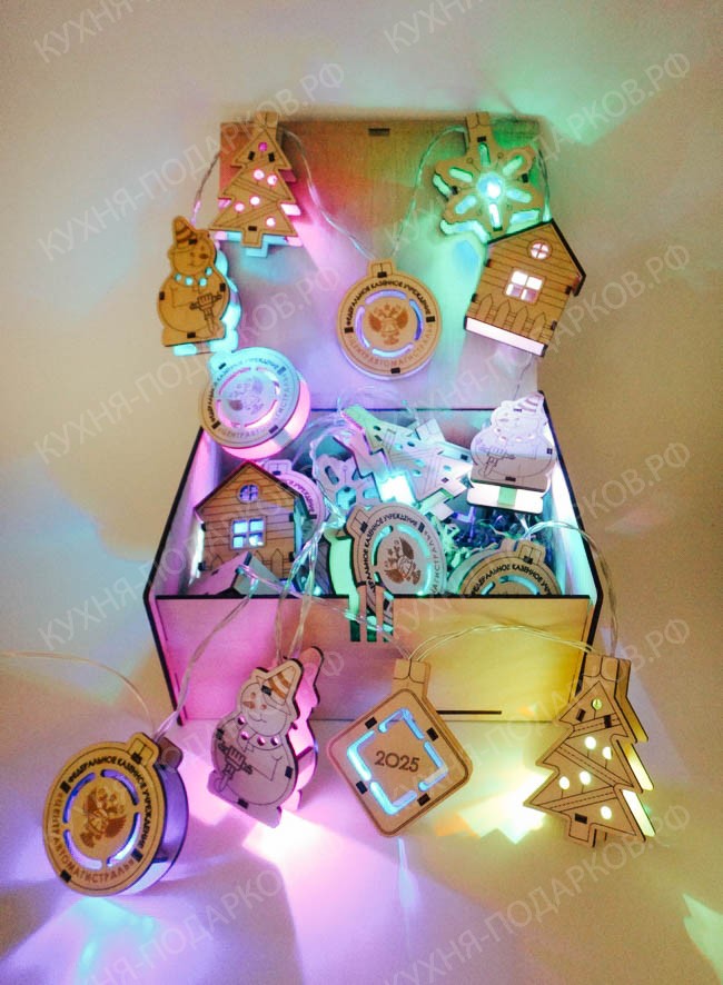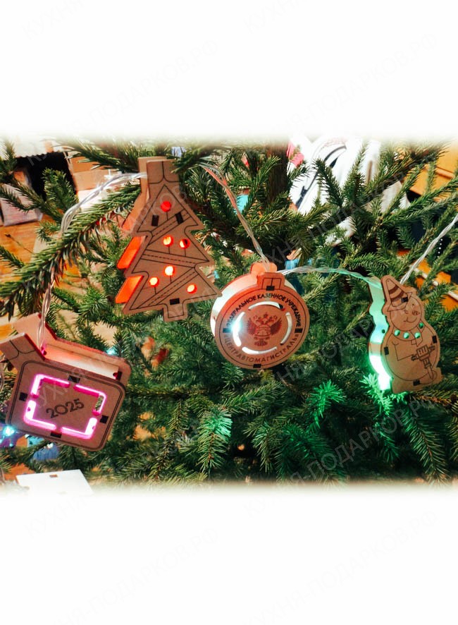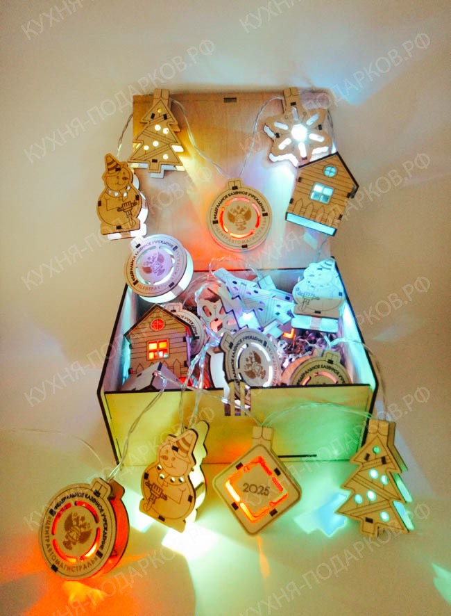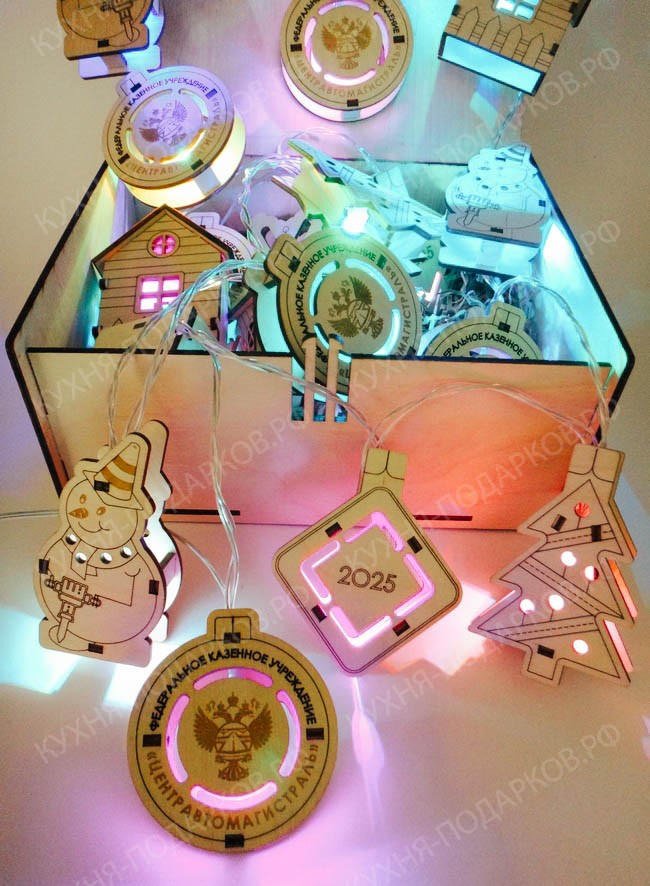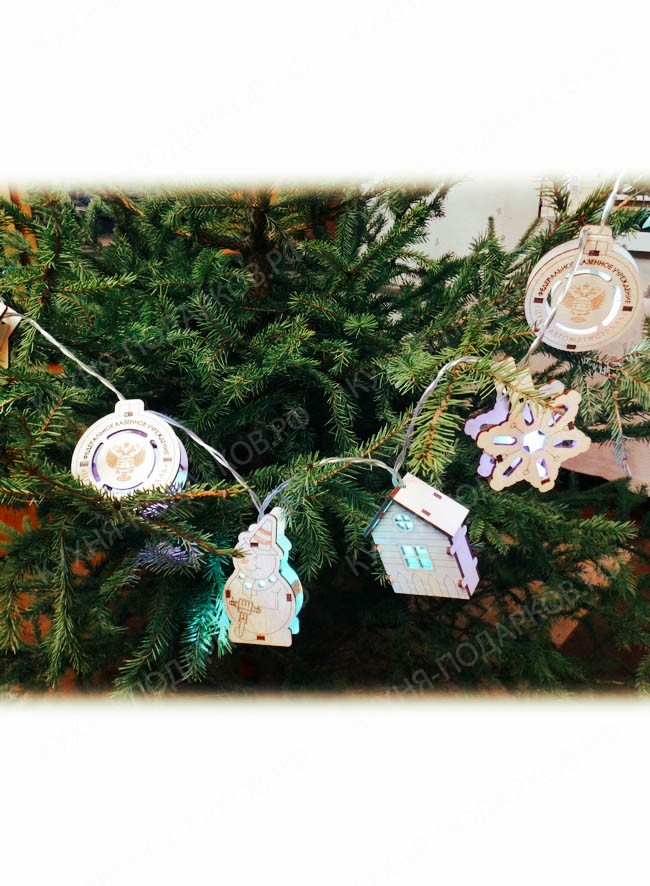 - Новогодняя деревянная гирлянда с логотипом компании