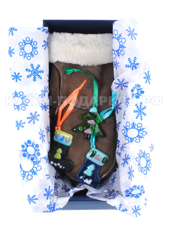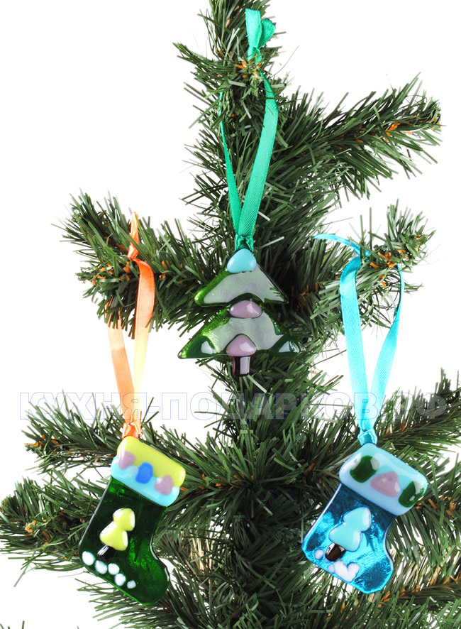 Новогодняя игрушка из стекла - елочка и валенок